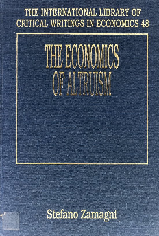 This an important volume contains the major articles on the economics of altruism published since 1975. The articles are grouped under 6 headings: the emergence of altruistic behaviour, varieties of altruism, the relevance of altruism and selfishness, altruism and allocation of resources, evolutionary dynamics of altruism, extended rationality and altruistic behaviour. The Economics of Altruism will be welcomed by all those with an interest in economics, philosophy, psychology and sociology.