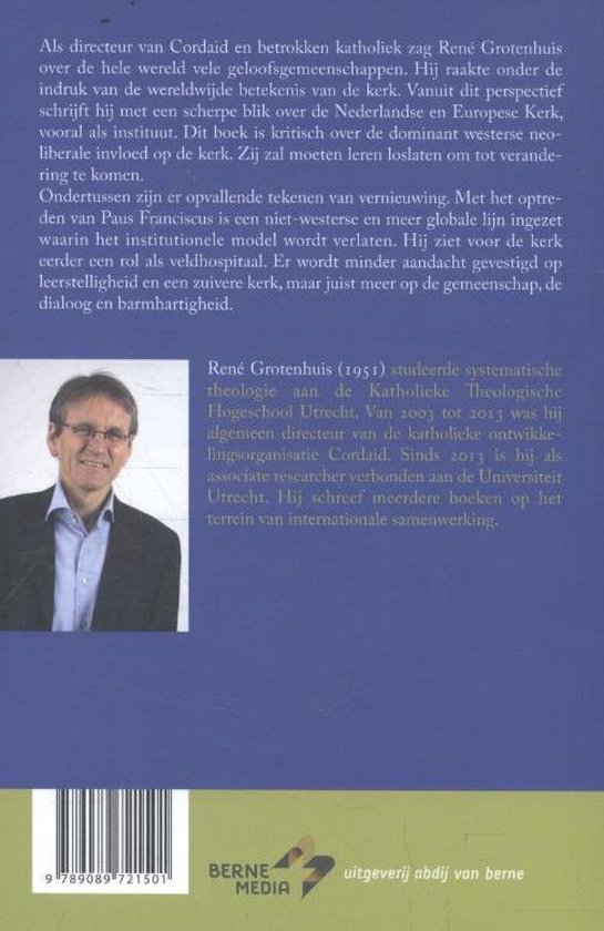 Cordaid-man en betrokken katholiek René Grotenhuis zag over de hele wereld vele geloofsgemeenschappen. Hij raakte onder de indruk van de wereldwijde betekenis van de kerk. Vanuit dit perspectief schrijft hij met een scherpe blik over de Nederlandse en Europese Kerk, vooral als instituut.