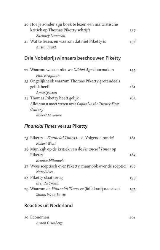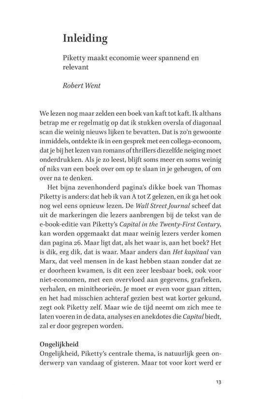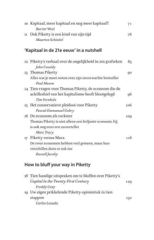 Inmiddels zijn al meer dan 500.000 exemplaren van ‘Capital’ verkocht, en in veel landen, waaronder Nederland, is de vertaling net verschenen. Piketty is hot op blogs, websites en twitter, waar honderden commentaren en beschouwingen zijn verschenen. Dit boek biedt onder meer een selectie uit de interessantste en grappigste stukken die over ‘Capital’ en zijn auteur zijn gepubliceerd. Om naast het boek te lezen. Of om er in elk geval over mee te kunnen praten.