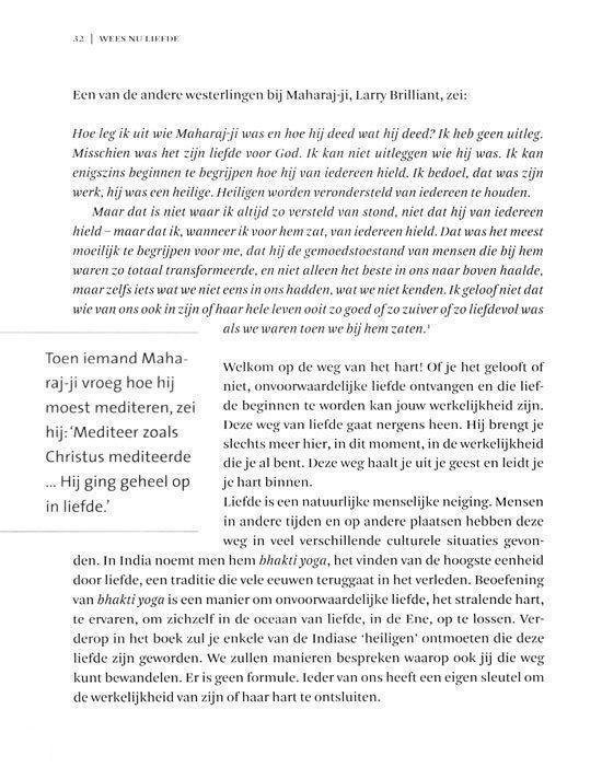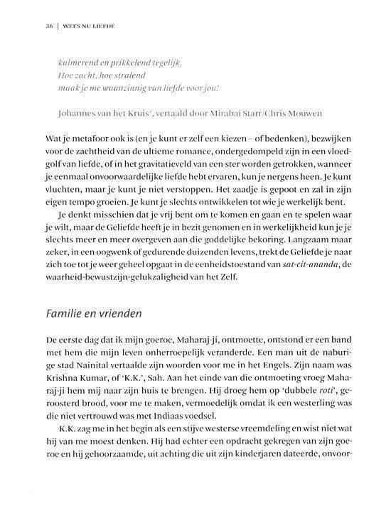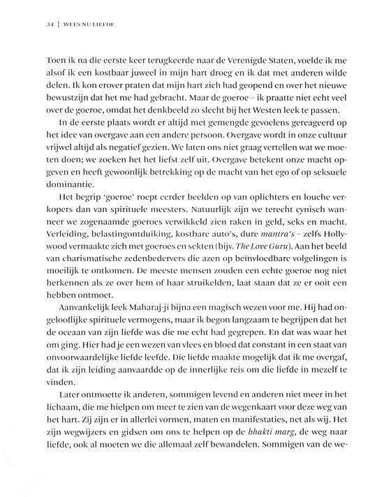 Ram Dass laat ons zien dat onvoorwaardelijke liefde persoonlijk en spiritueel is. In dit boek wordt de verhouding tussen de leerling en de goeroe met zeldzame innigheid en liefde beschreven. Maharaji, de Indiase goeroe van Ram Dass, personifieert voor de auteur de onvoorwaardelijke liefde. Het is mooi en ontroerend om Ram Dass in zijn diepgaande veranderingsproces te volgen. In deze autobiografie staat de innerlijke pelgrimage op de voorgrond.