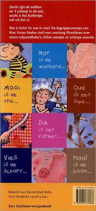 Origineel versjesboek over de betekenis van allerlei begrippen zoals ‘vies’, ‘schoon’, ‘licht’ en ‘stout’. Bekend van kleuterblad Bobo.